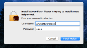 Step 3: you will be using Mac user name and password to help of install helper in your Mac. Myself it’s very painful to say to you but no option is available to avoid installing the Adobe helper tool.